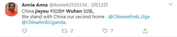 推特用户Annie Anna说,中国加油,武汉加油,我们与第二故乡中国站在一起。