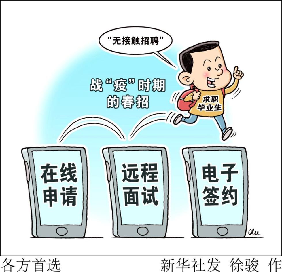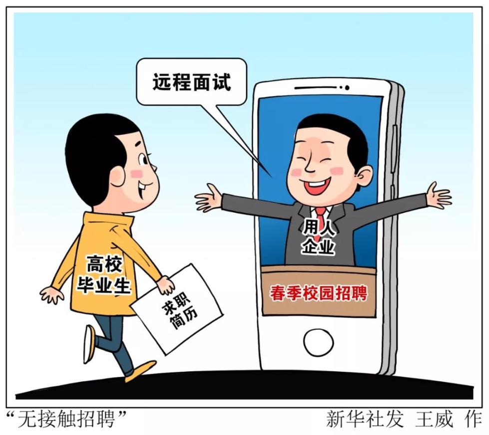 腾讯、阿里、网易、苏宁、OPPO等招聘企业明确提出全面采用“无接触招聘”,求职毕业生经过在线申请、远程面试、电子签约,即可完成求职和入职的全部流程。