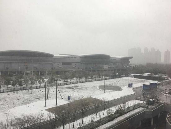 2月15日,山东第八批赴湖北医疗队队员、山东单县中心医院护理彭诚前拍下窗外的雪。他在微博中写道:“第一次见到南方的雪。”@我想夜班睡一觉到天亮