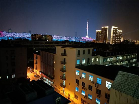 2月21日,江西医疗队护士吁慧娜拍下武汉市第五医院住院部窗口外的夜景。当天是她来到武汉的第26天。@嗨嗨妮大人