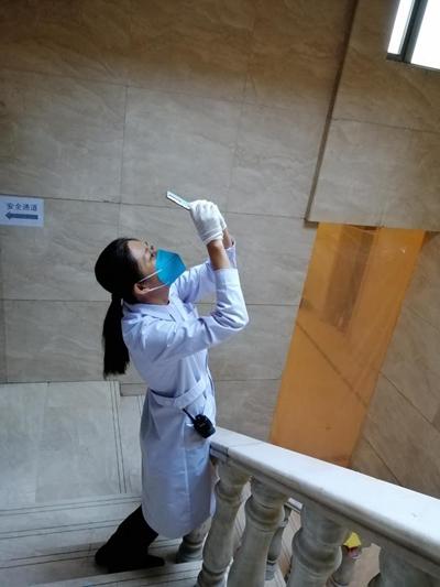 2月18日,新疆乌鲁木齐某医学观察点,一名医生用手机拍摄天空。她的微博中写道:“上午接到通知,我是第二批去武汉……午饭后观察点酒店的玻璃天幕可以看到蓝蓝的天空,这是我到观察点第一次抬头看天,真蓝,很想拍下来,可是怎样也调不出想要的样子,负责安保的林哥帮我拍了这张照片。”@哭泣一粒沙