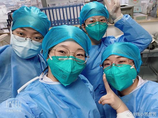 1月24日,武汉大学人民医院一线护士们的自拍合影。@钱小芳芳芳