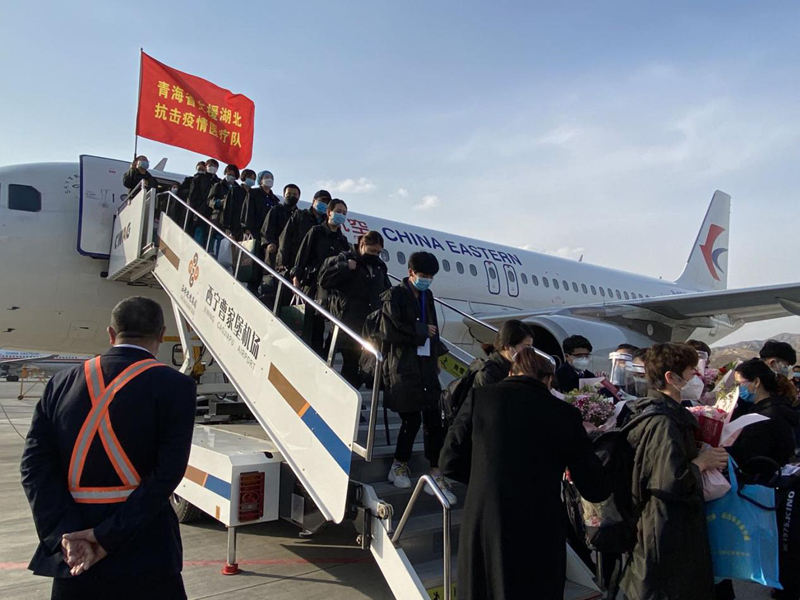 3月17日下午,青海省第二批援助武汉医疗队回到家乡。杨玥摄