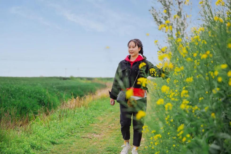 下了火车上了汽车,包继静不时地指向窗外,向同事讲述自己当初走夜路时的情景。“当时,这段路被封了,什么车也过不去,我们只好绕着路障摸黑走。”“那时麦苗刚长出来,你看现在麦子都出穗了!”在村口下车后,包继静路过一片油菜花田。