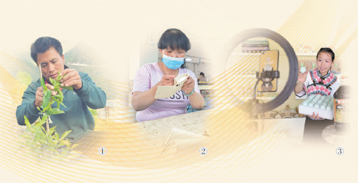 各地通过多种渠道,帮贫困户端稳饭碗。村里培育产业,村民到种植基地打工赚钱;干部介绍工作,不出远门靠加工皮包挣工资;直播销售山货,不但自己有收入,还能带着老乡一起奔小康。