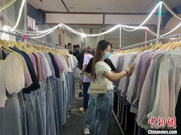 “50元两件,随便挑随便选!”女装商贩刘女士和她的伙伴们站在板凳上高声吆喝,推销自家T恤。因价格低廉,引得不少路过的市民爽快买单。