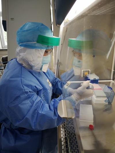 “新实验室从选址到发出第一批检测报告,仅用了约48个小时。”实验室负责人马亮说。马亮接到任务,要求6月22日开始日检测量扩大到6000-10000人份。此前,由于实验室空间、设备等因素限制,日检测量大约有1000人份。因此,不得不紧急制定采购计划,扩建改造实验室。