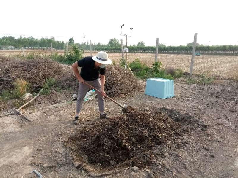 朱高玄在进行堆肥实验。 白寨科技小院供图。