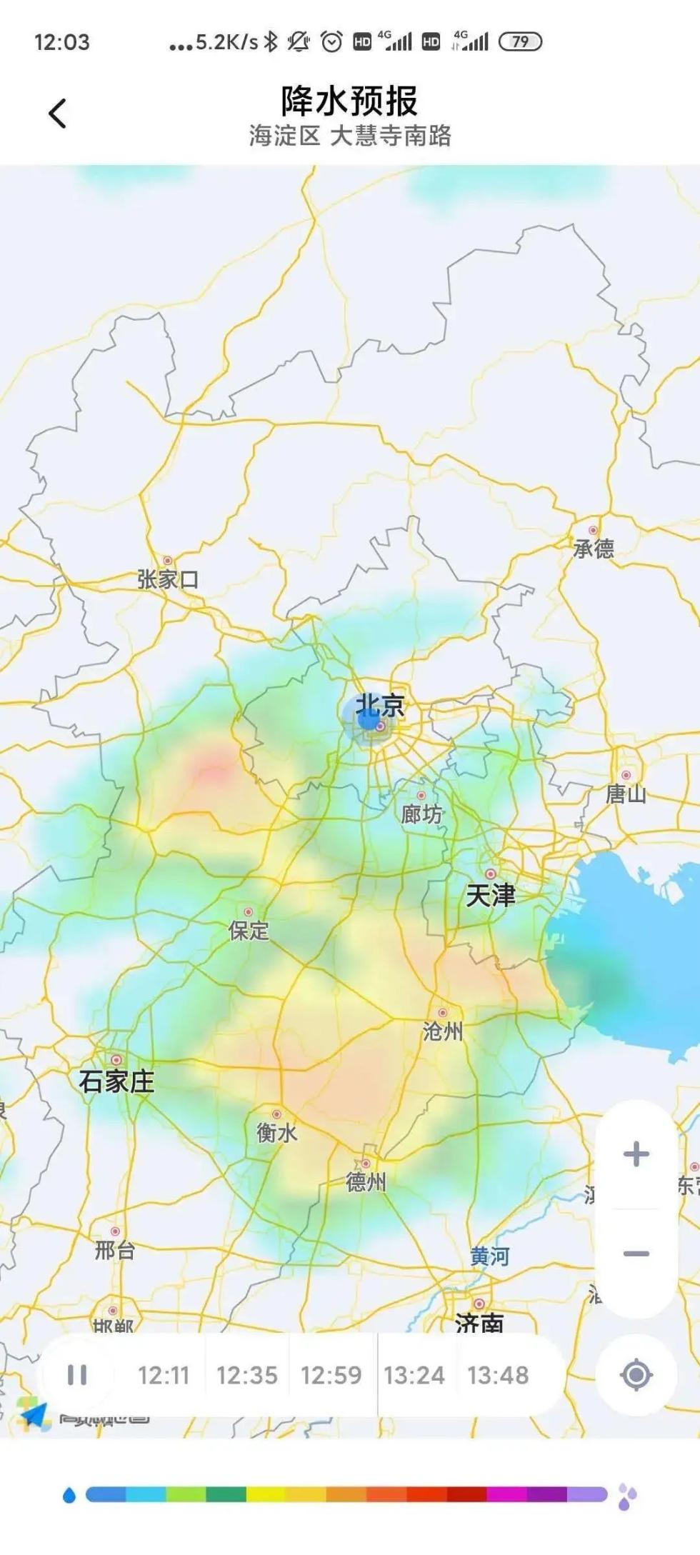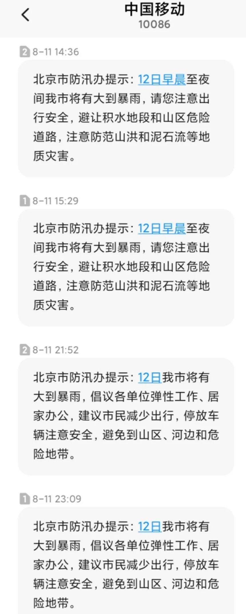 前一天,北京市气象部门预报显示,京津冀地区于12日将有一次区域性强降雨天气过程,大部分地区将出现大到暴雨,局地有大暴雨,为今年入汛以来最强降雨过程。