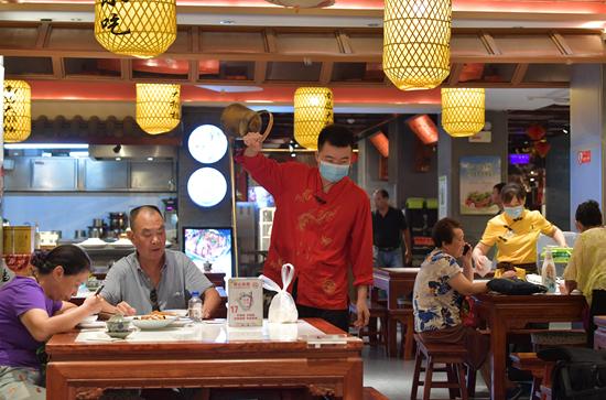 近日,江西省南昌市4万余家餐馆饭店开展“文明就餐,杜绝浪费”主题活动。餐饮行业通过“光盘族”打折、“半份菜”和“N减1”点菜法等措施,拒绝“舌尖上的浪费”,倡导文明就餐。新华社记者 彭昭之/摄