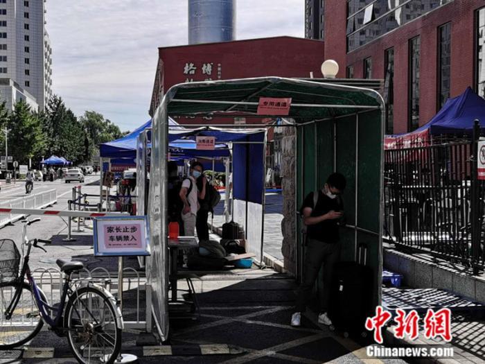 记者在现场观察到,学校的入口处设有专用通道,学生要进行登记、消毒、测温等一系列流程后才可进入校园,而家长等校外人员则一律禁止入内。