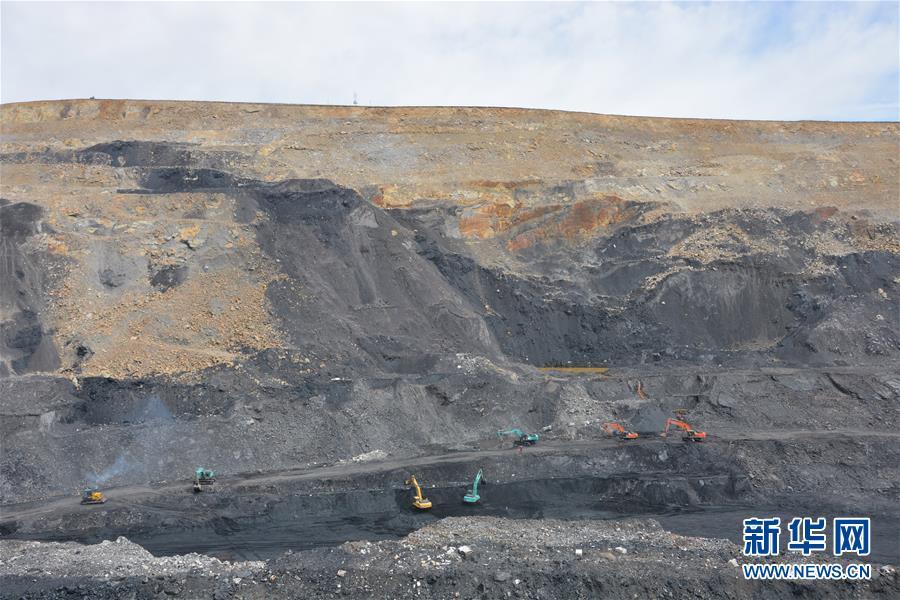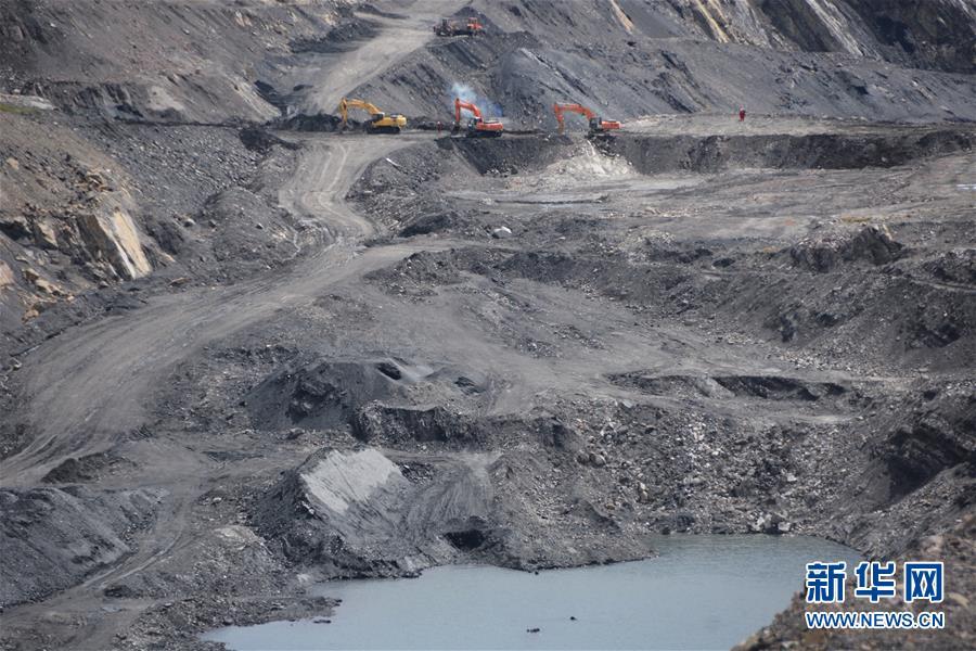 这是大型机械在木里矿区的一处矿坑内进行整治作业(8月31日摄)。 新华社记者 王浡 摄