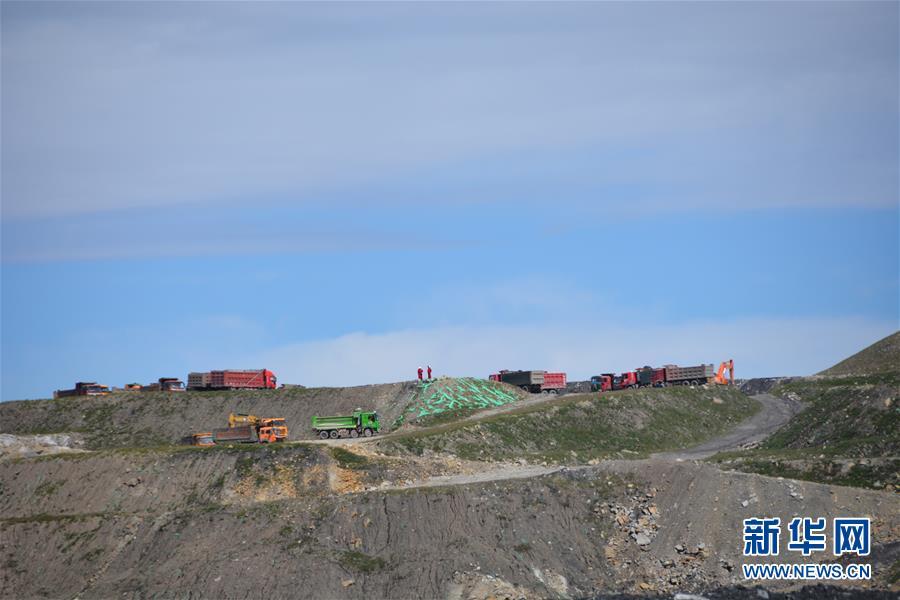 这是大型机械在木里矿区的一处矿坑内进行回填作业(8月31日摄)。新华社记者 王浡 摄