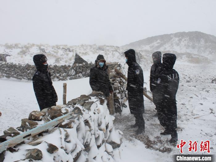 10月7日,受冷空气影响,哈密市伊吾县前山乡辖区突降暴风雪,乡域内302省道路段全面管控,地面积雪达20公分,风力达8-10级,天气极端恶劣。新疆出入境边防检查总站哈密边境管理支队前山边境派出所民警突接电话报警称,辖区有牧民群众被困在大雪覆盖的山窝中的牧业点,还有100余只羊走失。