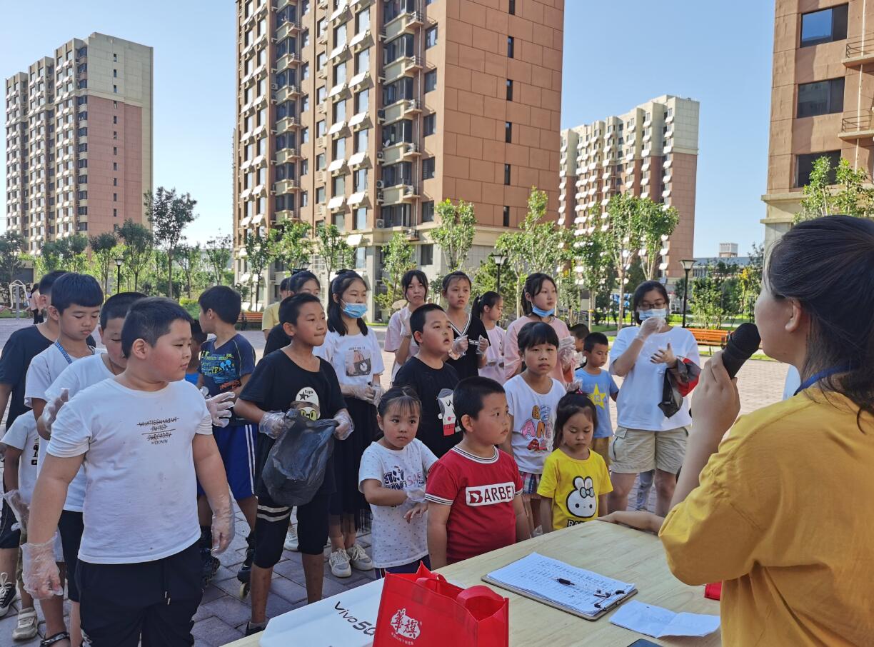 河北省保定市阜平县爱心互助协会组织阜东新区社区青少年参与社区环保志愿活动