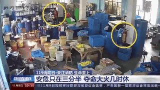 记者通过分析梳理近年来的典型火灾案例发现,夺命大火多由当事人对初起火灾处理不当导致。今年119前夕,记者从应急管理部消防救援局火灾调查部门获取的浙江宁海一家日化厂重大火灾事故的监控录像,让人们看到了一场酿成19人死亡的大火失火前后的真实场景。