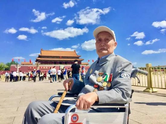 有一位70多岁的河南老兵,生日当天第一次来到天安门。他从县城赶来,买的是站票,合影前,郑重地换上了一套整齐的军装。