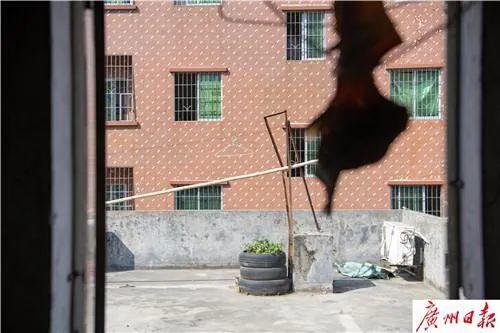 2018年4月15日14时许,广州市白云区鸦岗村北禺十四巷一栋厂房下,一条大狗从天而降。路人张萍(化名)被砸中后,瞬间倒地不省人事。