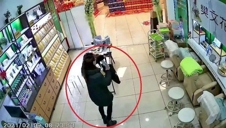 接警后,民警立即前往现场调查。查看现场公共视频,民警发现一名年轻女性在2月9日、3月14日两次进入该化妆品店