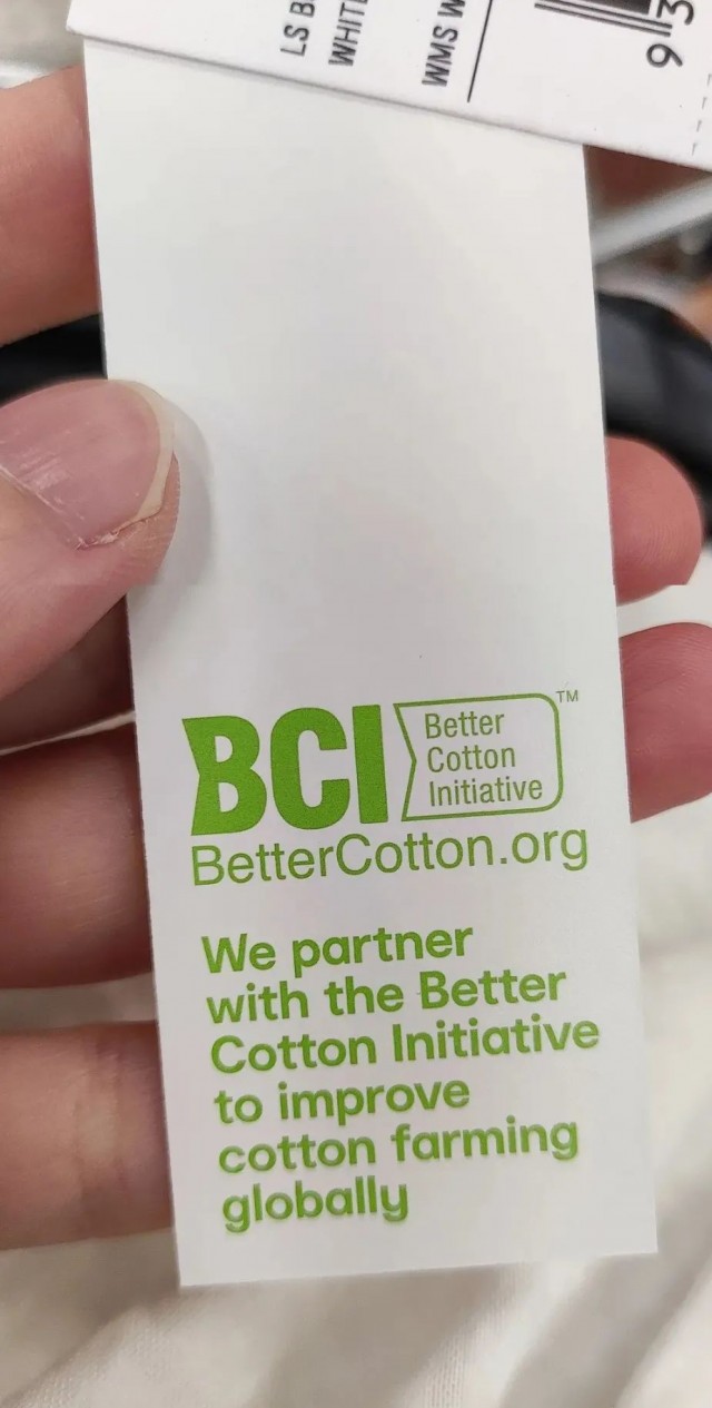 有消费者在自己购买的H&M品牌服饰标签中,看到了如下图所示的“BCI”标签。上述H&M官网声明中也提到的“BCI计划”,“BCI计划”是什么呢?
