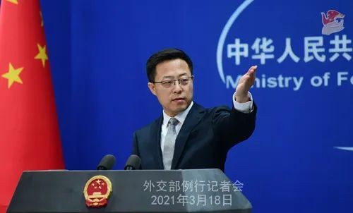 2021年3月16日,赵立坚表示,所谓新疆存在“强迫劳动”是彻头彻尾的谎言,其目的是限制打压中国有关方面和企业发展。