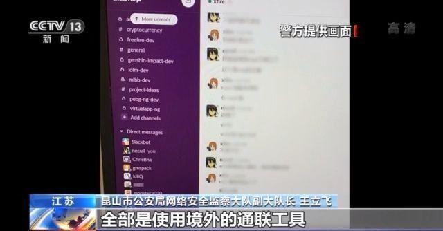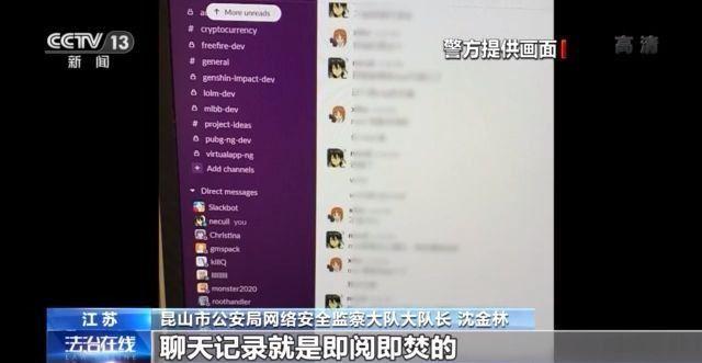 昆山市公安局网络安全监察大队大队长 沈金林: 他们的身份隐匿非常好,因为他们聊天都是用境外的小众聊天软件,很难追踪。聊天记录就是即阅即焚的那种,不容易给我们掌控。