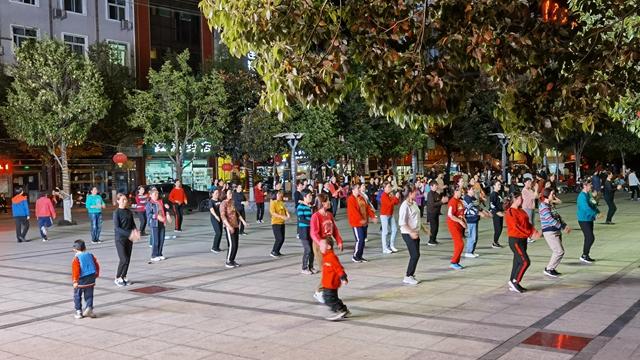 4月28日晚上,第一财经记者漫步佛坪县城时发现,才过晚上7点钟,街头一些店铺的大门,就已经上锁了,大街上,一些行人迎着路灯,沿着县城的主干道悠闲地聊天、散步。整个县城最繁华的地段,便是位于县城中心地段、一座连接椒溪河两岸的大桥桥头,桥头的东岸,是一个数百平方米的广场,广场上,不少中年妇女正踩着节拍,整齐地跟着节奏,享受着属于她们的“广场舞时间”。