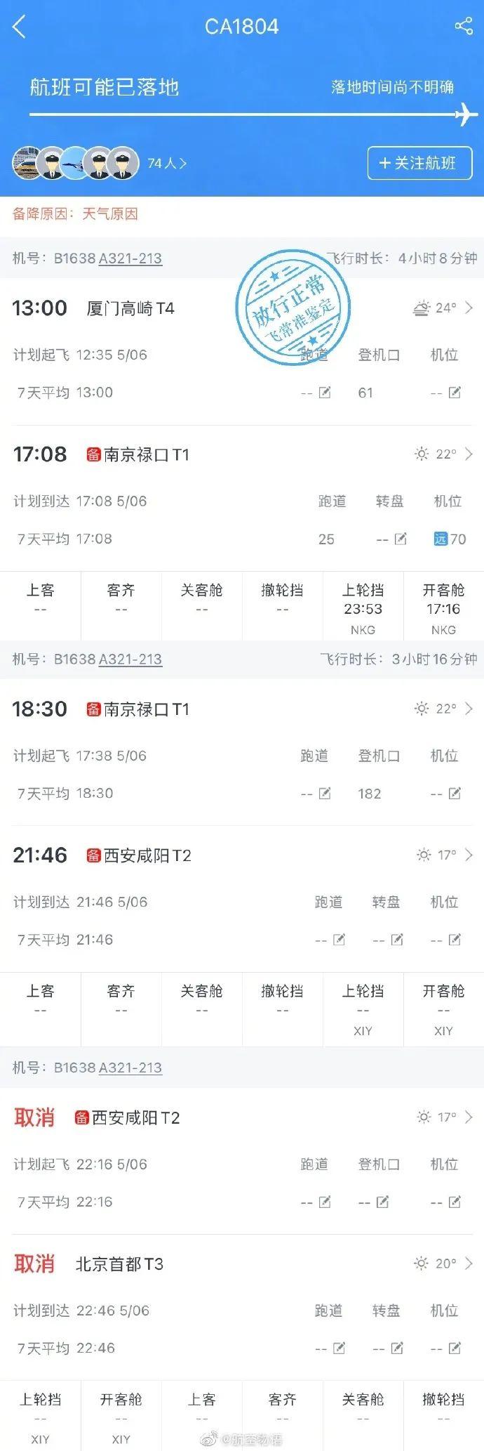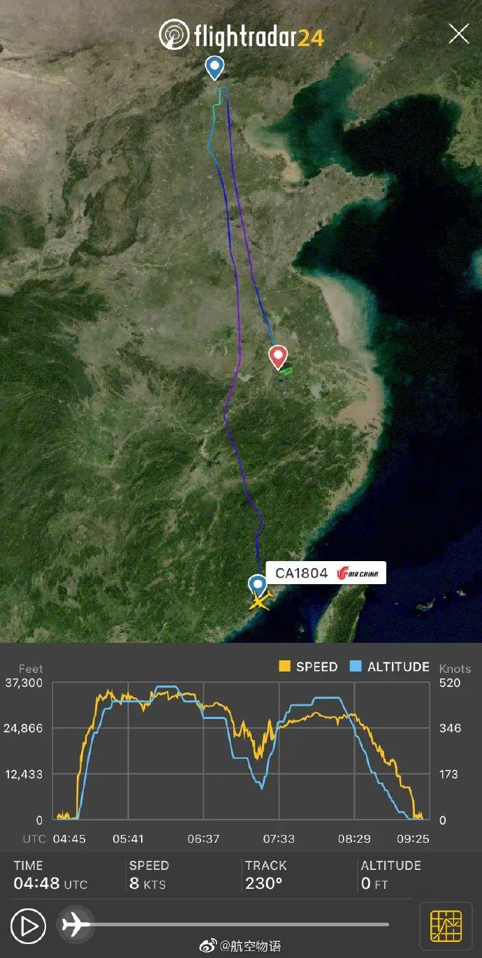 昨天北京大风,一堆航班延误、备降。在茫茫备降大军中,小语发现其中最有意思的就是厦门飞北京的国航CA1804航班。