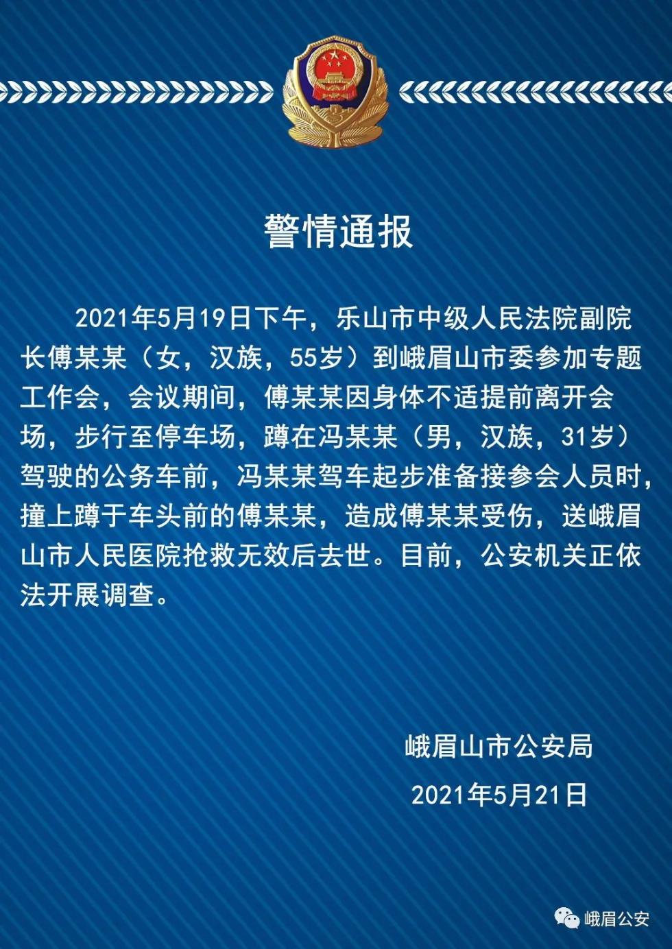 警方通报:乐山中院女副院长因身体不适蹲在公务车前被撞身亡
