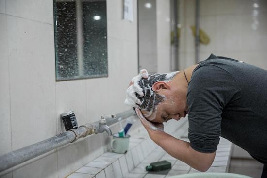 2017年11月26日早6点,要上早班的唐博在学校宿舍水房洗头。晚班零点下班,但早班7点前到岗要求他必须在6点前起床。