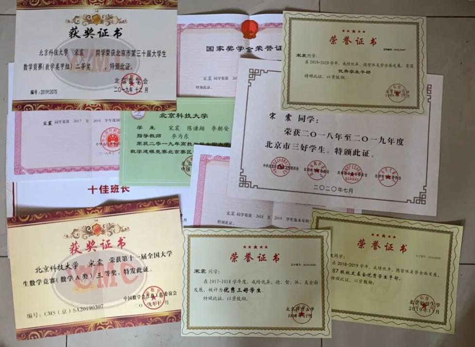大一上学年结束,宋震的各门专业课均高于90分,1/3的课程超过95分。慢慢地,宋震开始喜欢上数学。