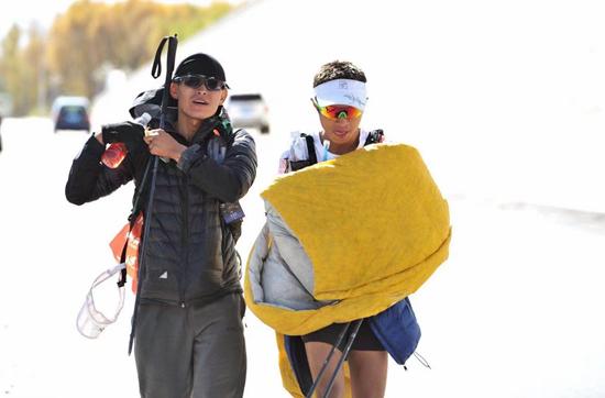 他们一次次逼近生命的极限。遇到极端天气,赵家驹也不会轻易停下,而是一边吃东西一边奔跑,让身体回温。但他觉得梁晶比自己更拼,即使中暑、胸闷,梁晶也会咬牙坚持。