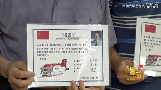 汪品先下潜证书受访者本人供图