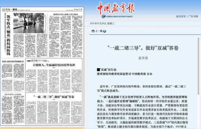7月28日《中国教育报》第二版刊发题为《“一疏二堵三导”,做好“双减”答卷》的文章。这篇文章的倒数第二段是这样的: