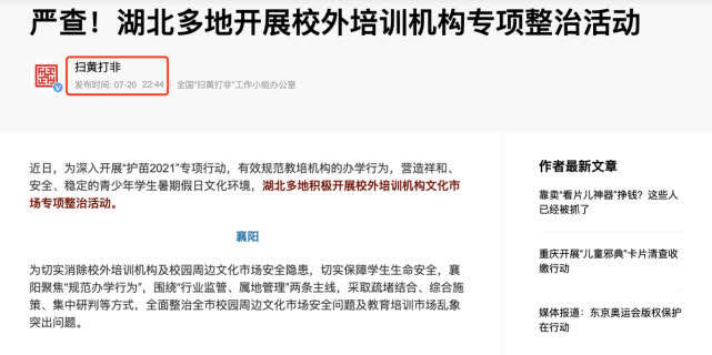 溯源:湖北扫黄打非办加入校外培训监督整治?