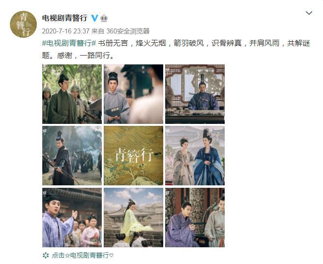 吴亦凡被刑拘后,《青簪行》官方微博公开显示内容只剩一条微博,且不涉及两位主演。