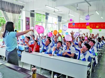 5月20日,在四川广汉中学实验学校高新区分校,心理咨询师在给即将参加中考的学生们传授心理减压技巧。新华社发