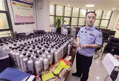 7月9日,公安新城分局公园北路派出所破获一起非法贩卖“笑气”案件,共查获“笑气”200余罐。