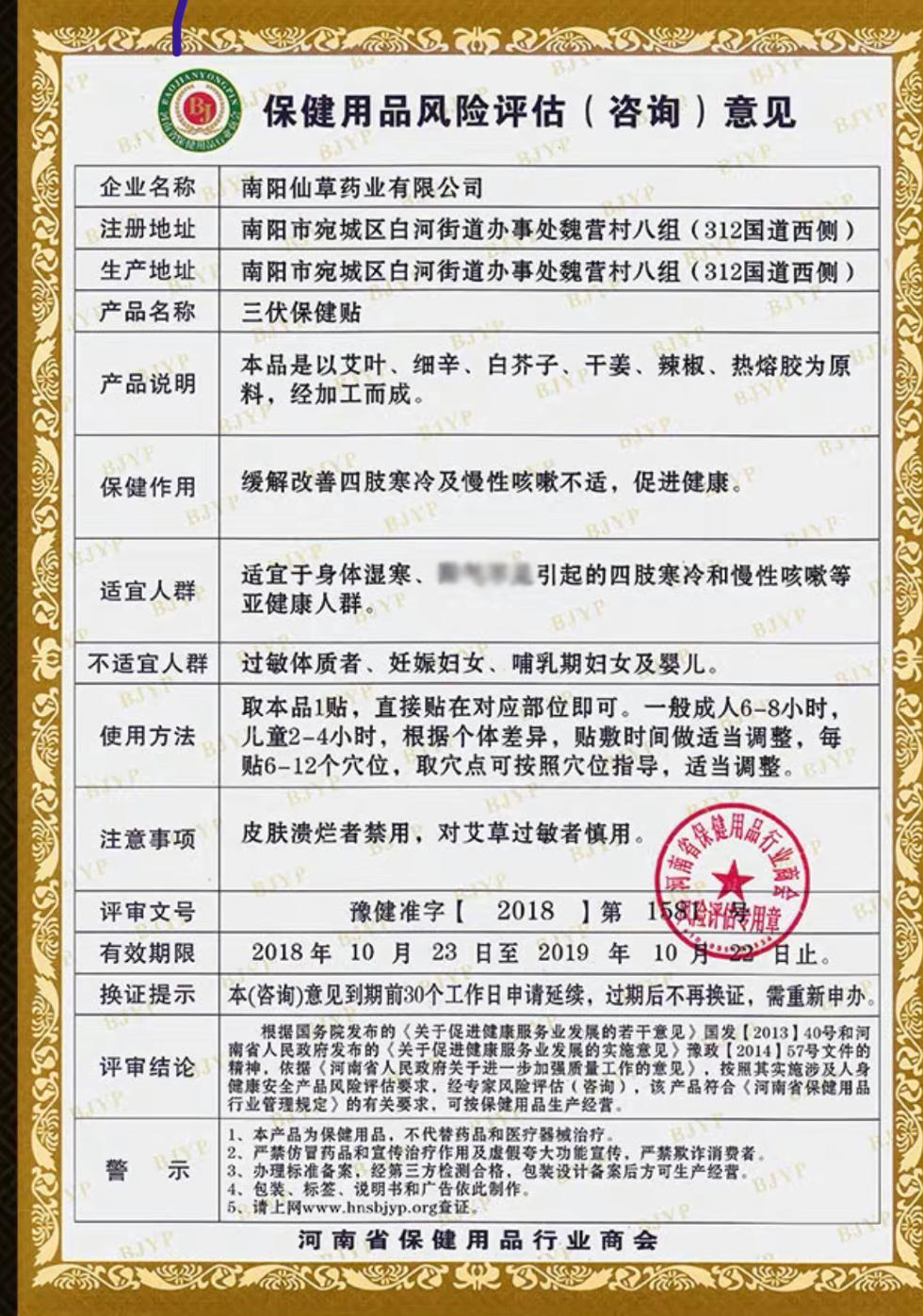 澎湃新闻注意到,和绿金家园的一些“三伏贴”产品一样,还有不少“三伏贴”打着保健品的旗号,使用的是河南省保健用品行业商会颁发的“豫健准字”、“豫健团标证字”这样的另类文号。