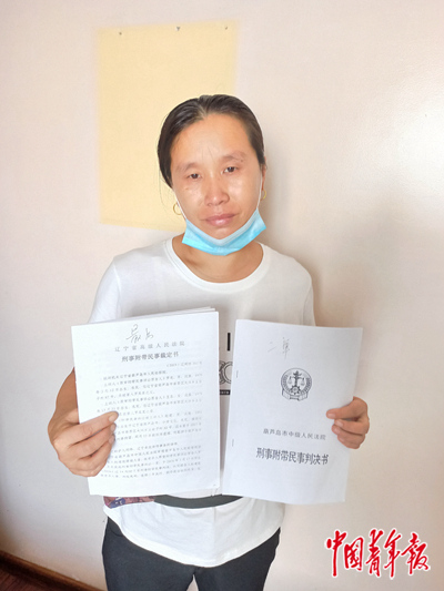 王东向记者出示辽宁省高级人民法院刑事附带民事裁定书。中青报·中青网记者 王晨/摄
