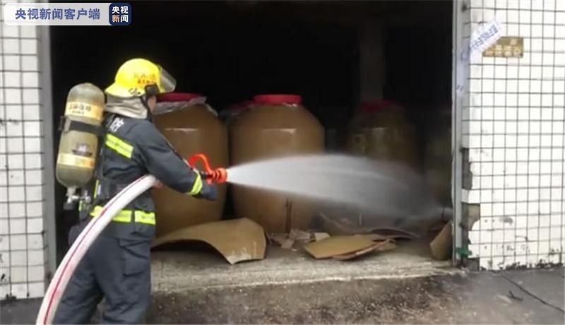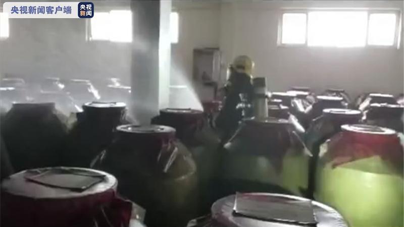 四川泸州市泸县发生6.0级地震后,泸县一储酒仓库储酒瓷罐受损破裂,高浓度白酒泄漏,当地消防部门接到报警求助后立即前往处置。