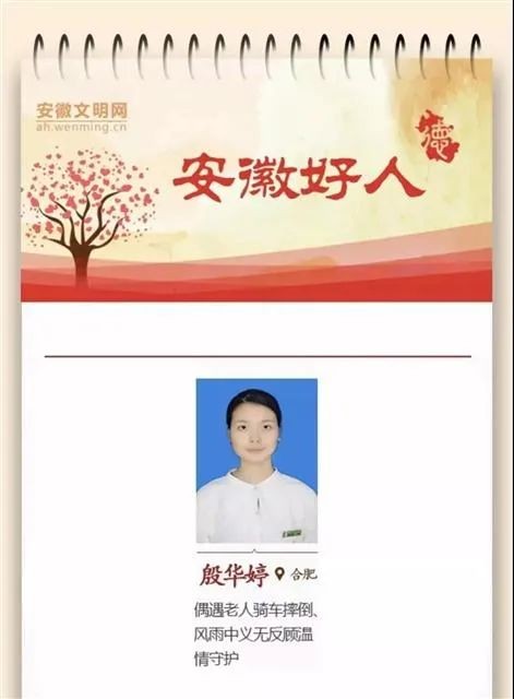 这位偶遇老人骑车摔倒、风雨中义无反顾温情守护的肥西姑娘殷华婷也入选“安徽好人”。