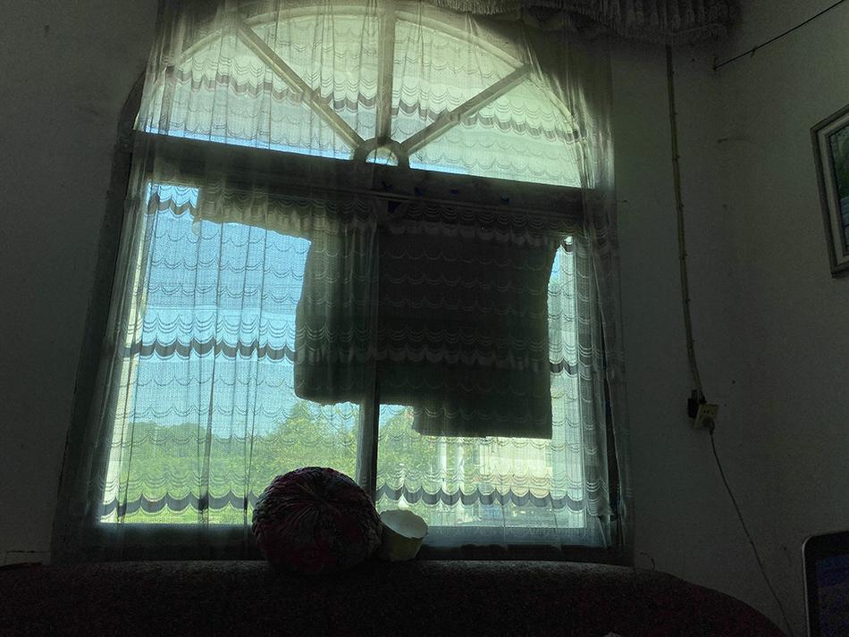 去年夏天,窗户外贴了些纸板挡光,因为李小中觉得光太刺眼。