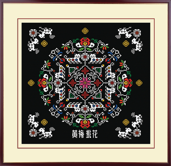 “黄梅挑花”历史悠久,起源于唐宋,发展成熟于明末清初,被列入首批国家级非物质文化遗产目录。不同于一般的刺绣,“黄梅挑花”重挑,挑花时,只需在底布上方连续做挑花的动作,在土布上以十字交叉针法挑出寓意吉祥的图案,曾在民间广泛用于缝补装饰或制作头巾等生活用品。