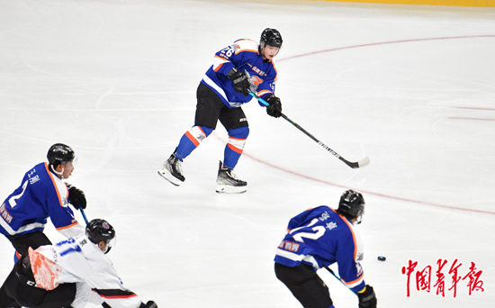 11月8日中午,北京首钢队员在“相约北京”冰球国内测试活动首场比赛中。 中青报·中青网记者 慈鑫/摄