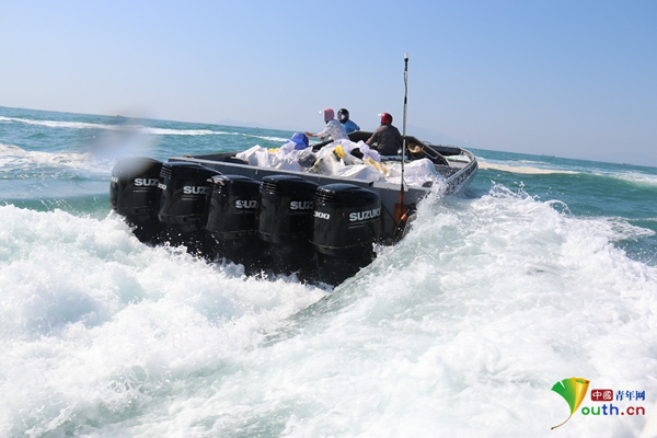 13时许,其中1艘嫌疑船舶见无法摆脱追缉后,便冒险冲礁后弃船逃跑。
