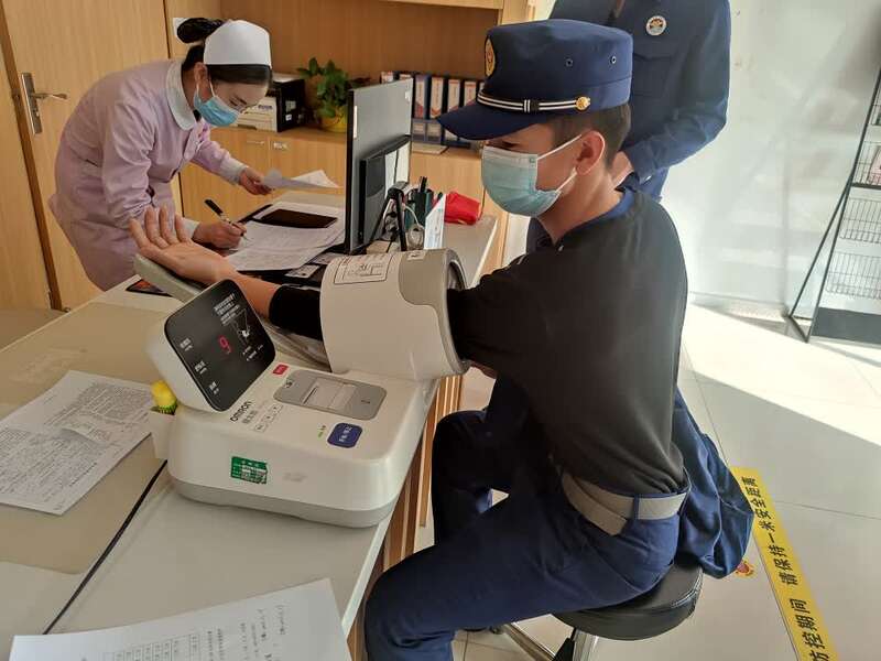 体温检测、填写表格、血液检测……当天,符合条件的2名消防员献血400毫升。