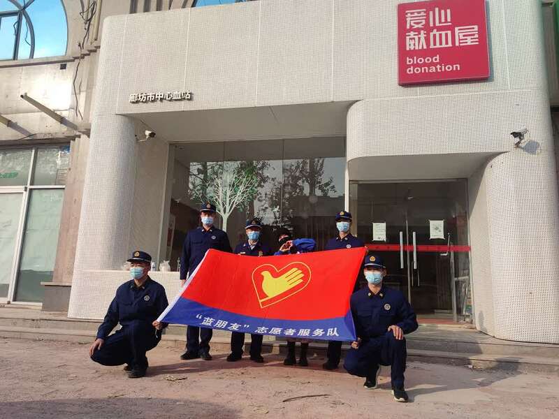 11月17日,“蓝朋友”志愿者服务队组织第一批血型匹配的4名指战员来到廊坊市中心血站爱心献血屋献血。