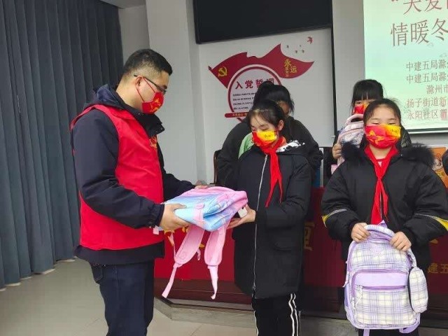 中国青年报客户端讯(中青报·中青网 记者 王海涵 通讯员 陈静 史跃跃 蔡瑞)为进一步推动“我为群众办实事”实践活动走深走实,1月10日腊八节当天,中建五局滁州城东花园项目党支部、扬子花园项目团支部联合滁州琅琊区扬子街道永阳社区组织15名青年志愿者来到滁州市永阳学校,为留守儿童送温暖。