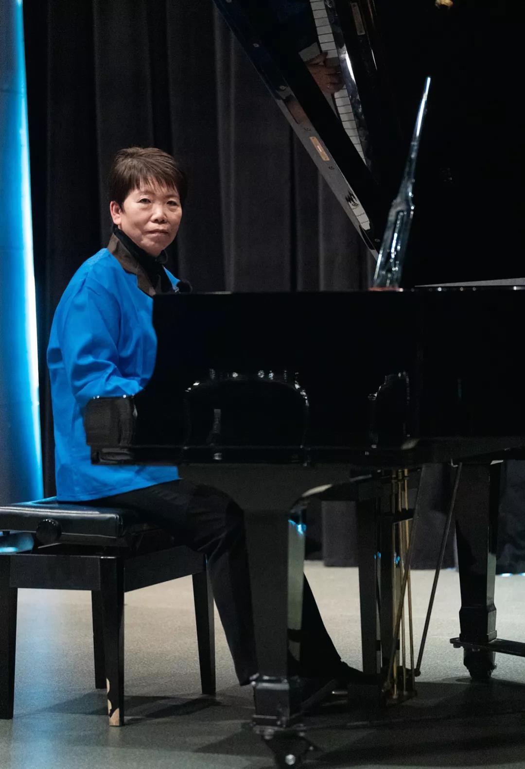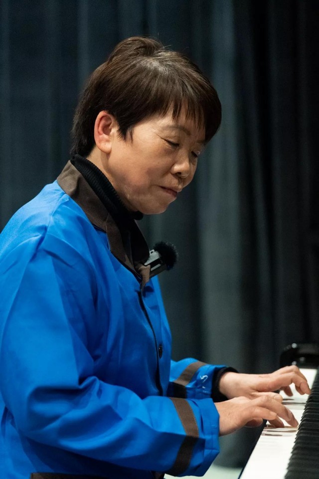 一位清华保洁阿姨在舞台上认真弹奏